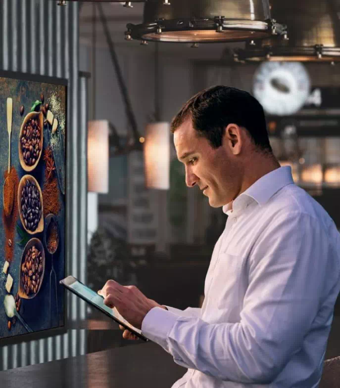 Можно показывать контент в местах продаж и оказания услуг клиентам, например: в магазинах, кафе, барах или салонах красоты
